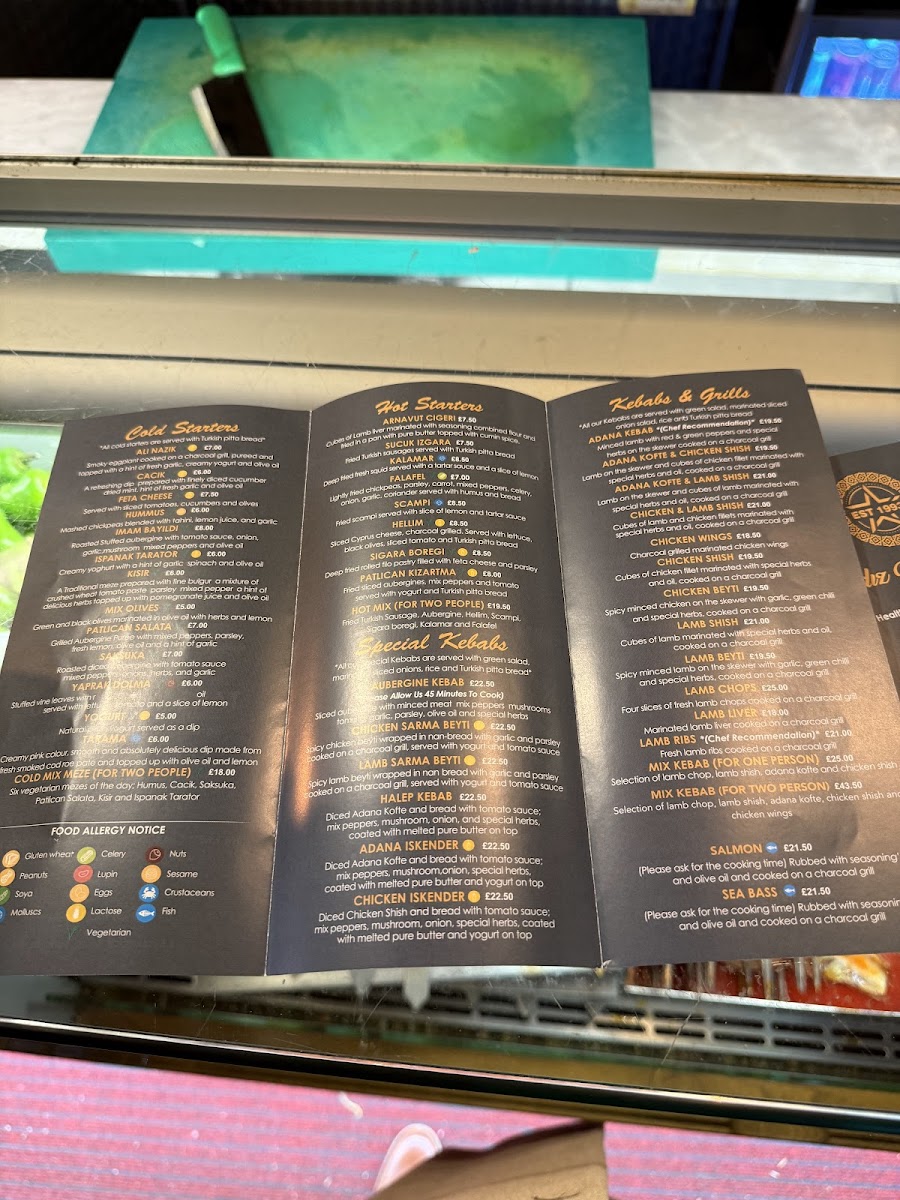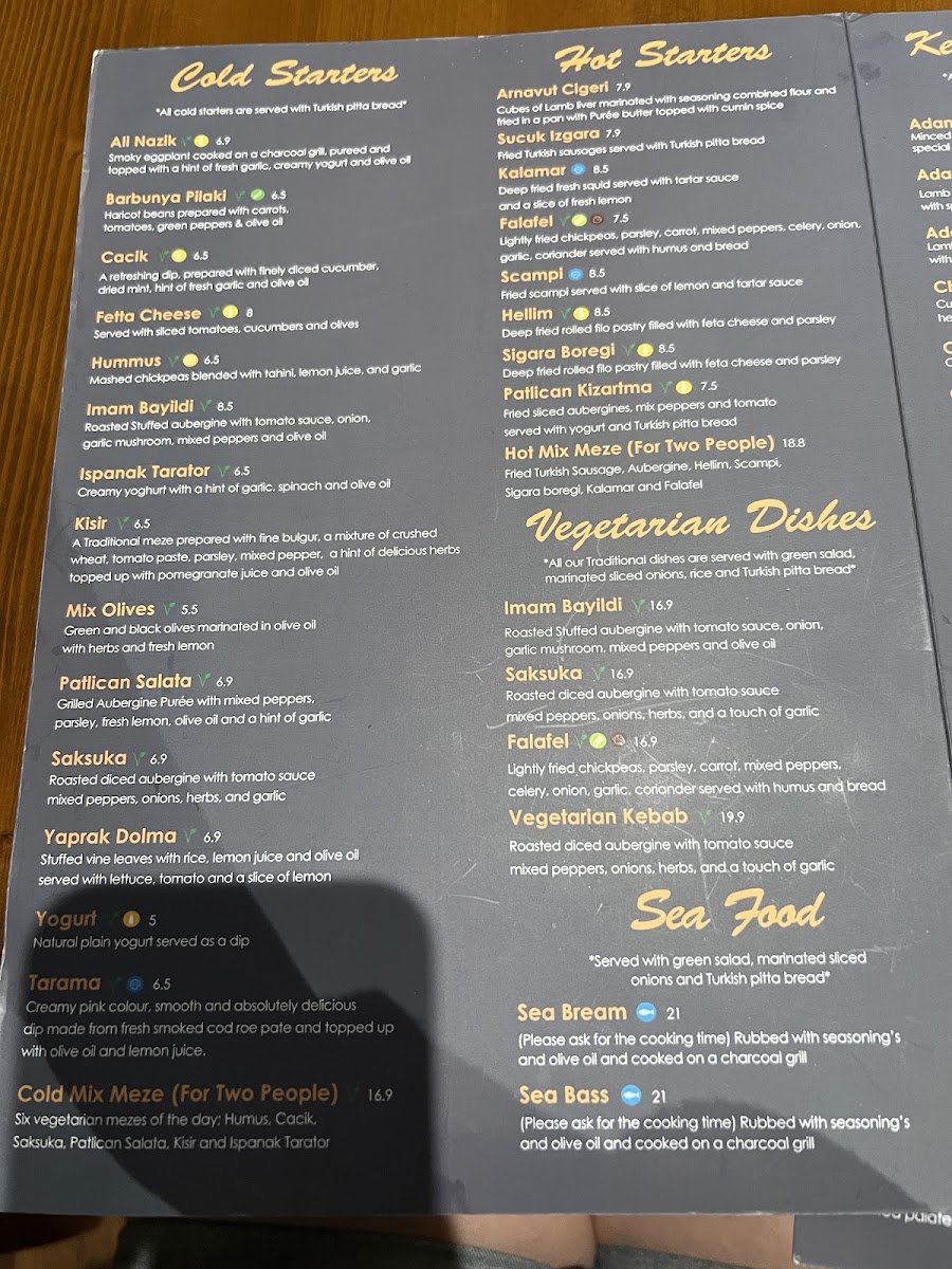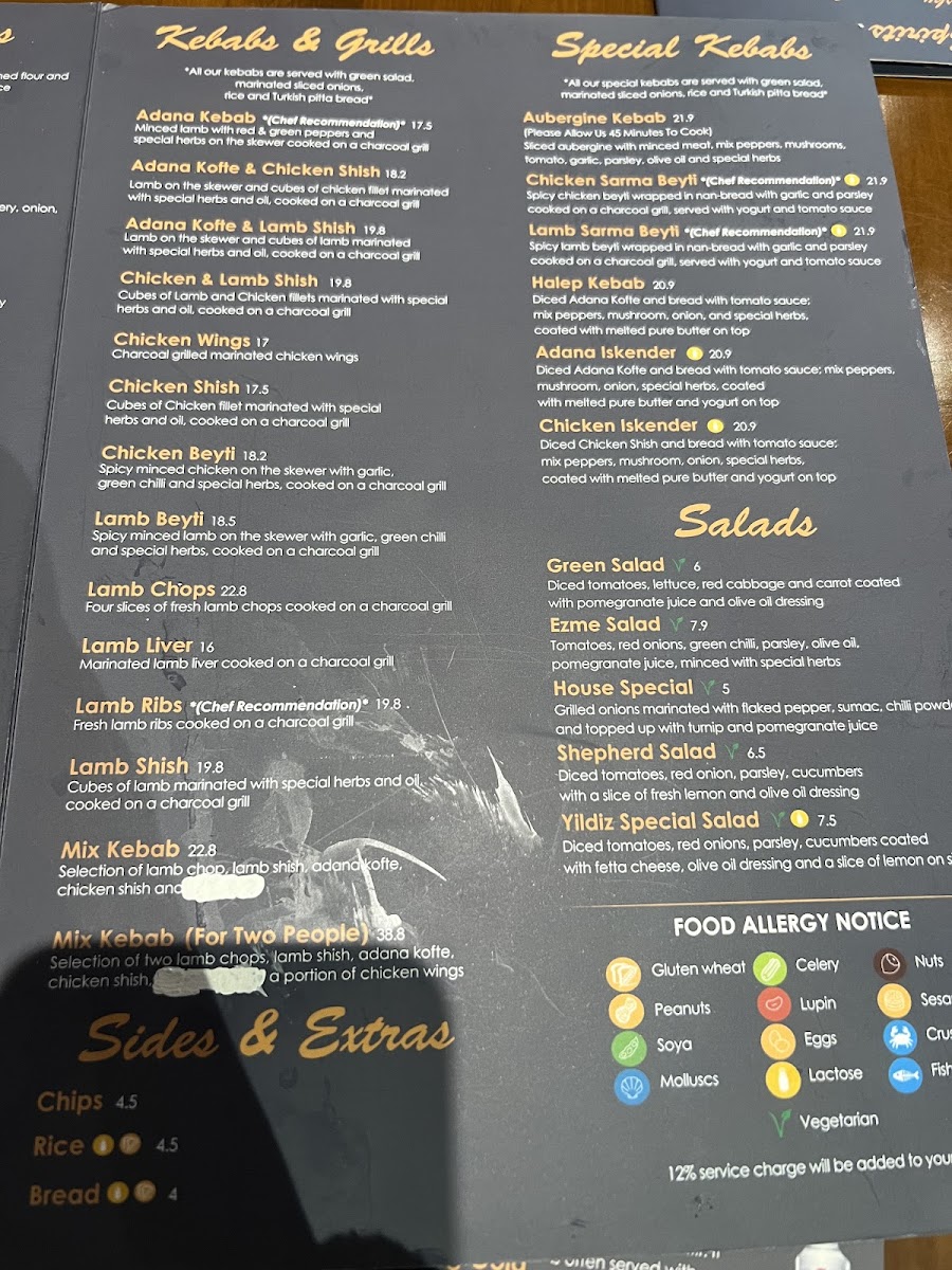 Yildiz Restaurant Menu
